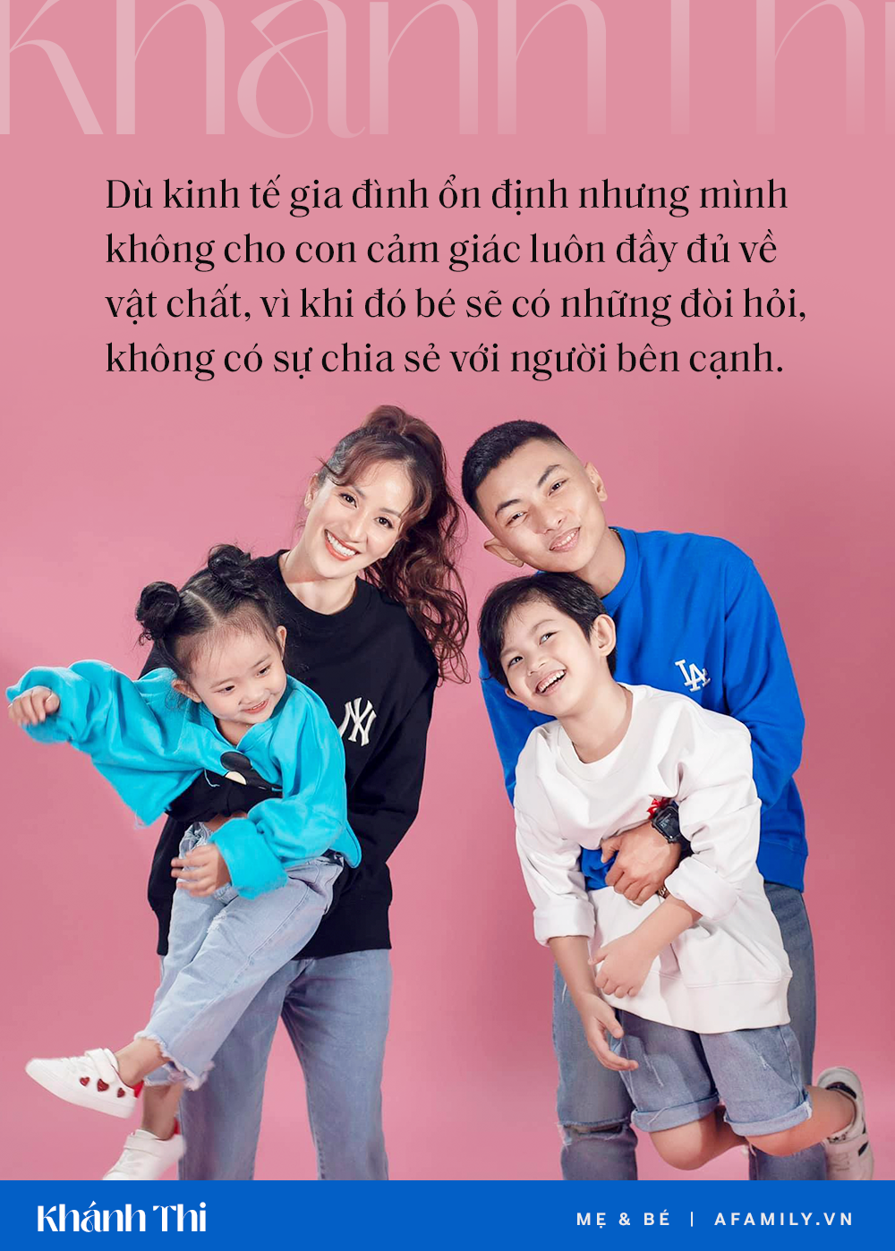 Dù kinh tế gia đình ổn định nhưng mình không cho con cảm giác luôn đầy đủ về vật chất, vì khi đó bé sẽ có những đòi hỏi, không có sự chia sẻ với người bên cạnh. Lúc đầu, mình rất thương con, mua thật nhiều quần áo, đồ chơi cho bé... nhưng giờ mọi thứ thay đổi khá nhiều. Dù vẫn thích con mặc đẹp, đáng yêu nhưng với một em bé thay đổi chiều cao, cân nặng rất nhanh thì mua quá nhiều quần áo sẽ vô cùng lãng phí. Mình cần phải rất tinh tế và kĩ lưỡng trong việc lựa chọn trang phục và mọi thứ trong cuộc sống cho các con.