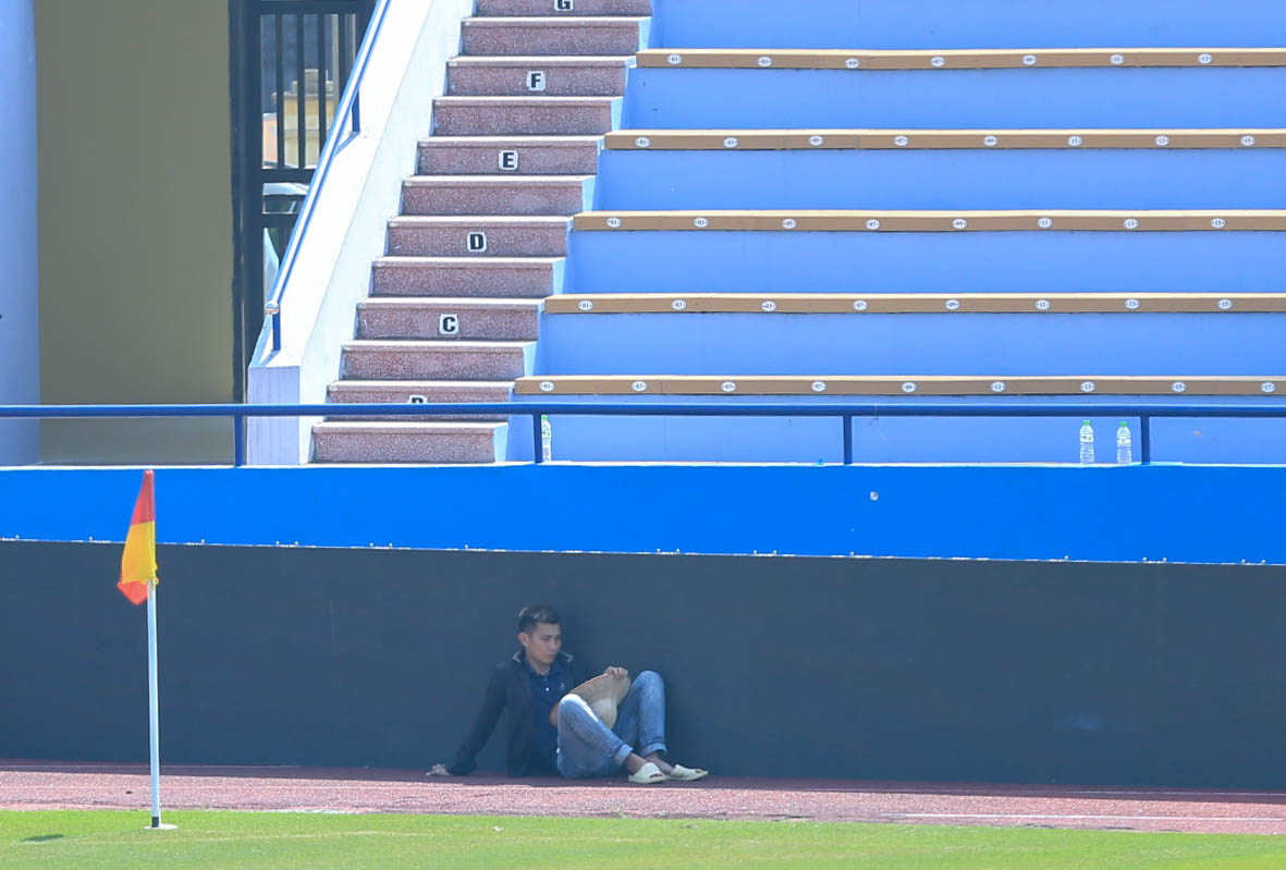 Một ngày trước trận đấu đầu tiên của bảng A SEA Games 31 diễn ra vào 6/5, những công nhân làm việc tại sân Việt Trì đang ra sức hoàn thiện các hạng mục