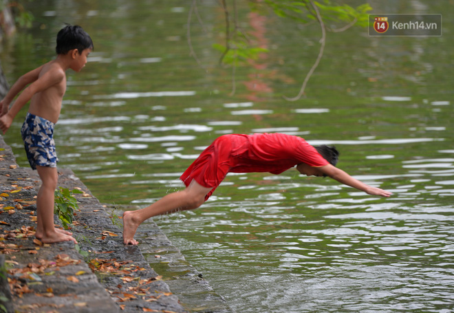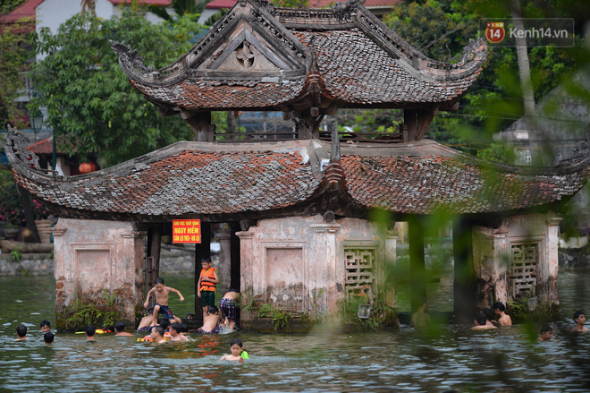 Năm học kéo dài thêm sau đợt nghỉ dịch Covid-19, sau những buổi đi học trên lớp hay ngày nghỉ cuối tuần thì trẻ em ở làng Đa Phúc, Thuỵ Khuê thuộc xã Sài Sơn (Quốc Oai, Hà Nội) lại được các ông bà, bố mẹ đưa ra hồ Long Trì, trước cửa chùa Thầy để tắm mát.